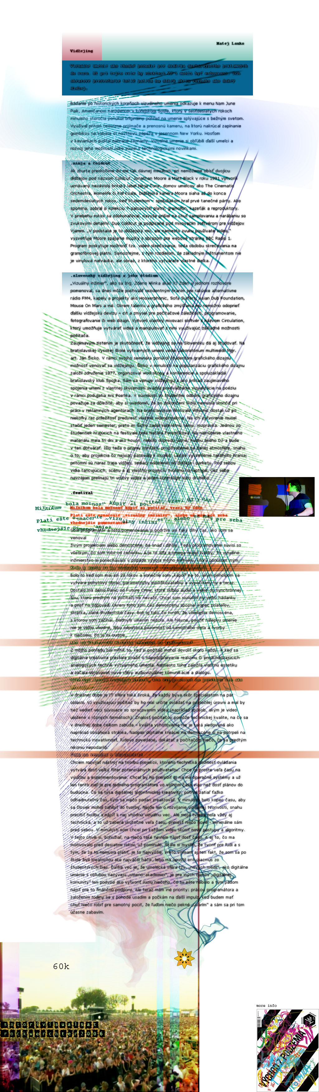 Vizuálne umenie ako vhodné pozadie pre dídžeja dostávajúceho prítomných do varu. Už pri tejto vete by niektorí VJ-i mohli byť nahnevaní. Ich obrazové prezentácie totiž patria na dobrú akciu rovnako ako dobrý dídžej.